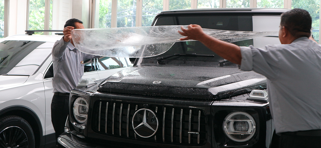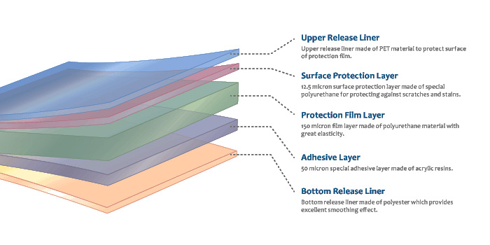 UNIGLOBE Paint Protection Film adalah produk baru yang mampu melindungi cat dan body mobil Anda secara maksimal. Material high-transmittance polymer polyurethane digunakan untuk menghasilkan sebuah lapisan film dengan transparansi dan fleksibilitas tingkat tinggi yang memungkinkan film memiliki tingkat elastisitas hingga 400%. Film dasar dengan ketebalan 150μ beberapa kali lebih tebal dari lapisan film pelindung biasa sehingga dapat menyerap dan menahan tekanan dan goresan jauh lebih baik. Dikombinasikan dengan beberapa lapisan bahan termasuk lapisan adhesif/perekat khusus, kami memberikan kinerja perlindungan tingkat tinggi untuk bodi mobil yang tidak mungkin dilakukan dengan sistem coating. Material Paint Protection Film yang sangat fleksibel dapat mengikuti kontur dan bentuk body mobil secara detail dan presisi sehingga mampu melindungi bagian-bagian tersebut dari goresan dan lecet yang mungkin terjadi. Selain itu, penampilan mobil tidak akan berubah karena transparansi dan kilapnya yang tinggi.